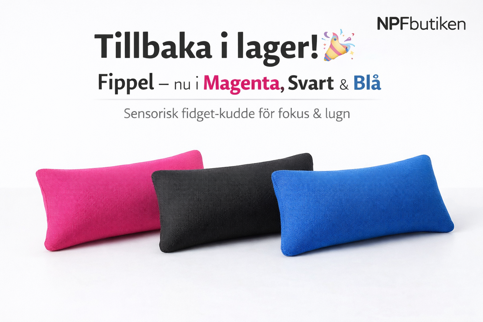 Nu dessutom i helt nya färger – magenta, svart och blå. Varje Fippel tillverkas för hand i Örbyhus av Silk Stitch, med fokus på kvalitet, känsla och lugn. En sensorisk fidget som ger behaglig taktil stimulans för fokus i vardagen.